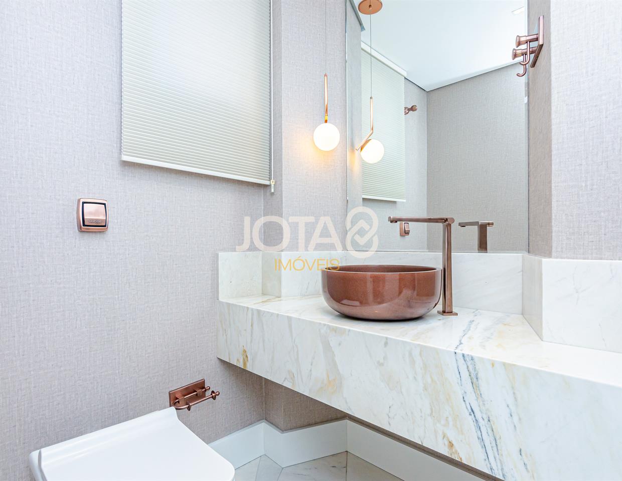A cozinha, verdadeiro ponto de destaque, apresenta móveis planejados Todeschini e eletrodomésticos italianos Tecno, unindo funcionalidade e elegância em cada detalhe. Para os amantes do churrasco, um espaço gourmet com churrasqueira a carvão oferece o cenário perfeito para celebrações especiais.